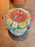 Handmade, embroidered patchwork, each cushion is unique. The underside of the cushion is solid colored.