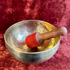 The singing bowl is supplied with a wooden string (with red suede) and a cushion.